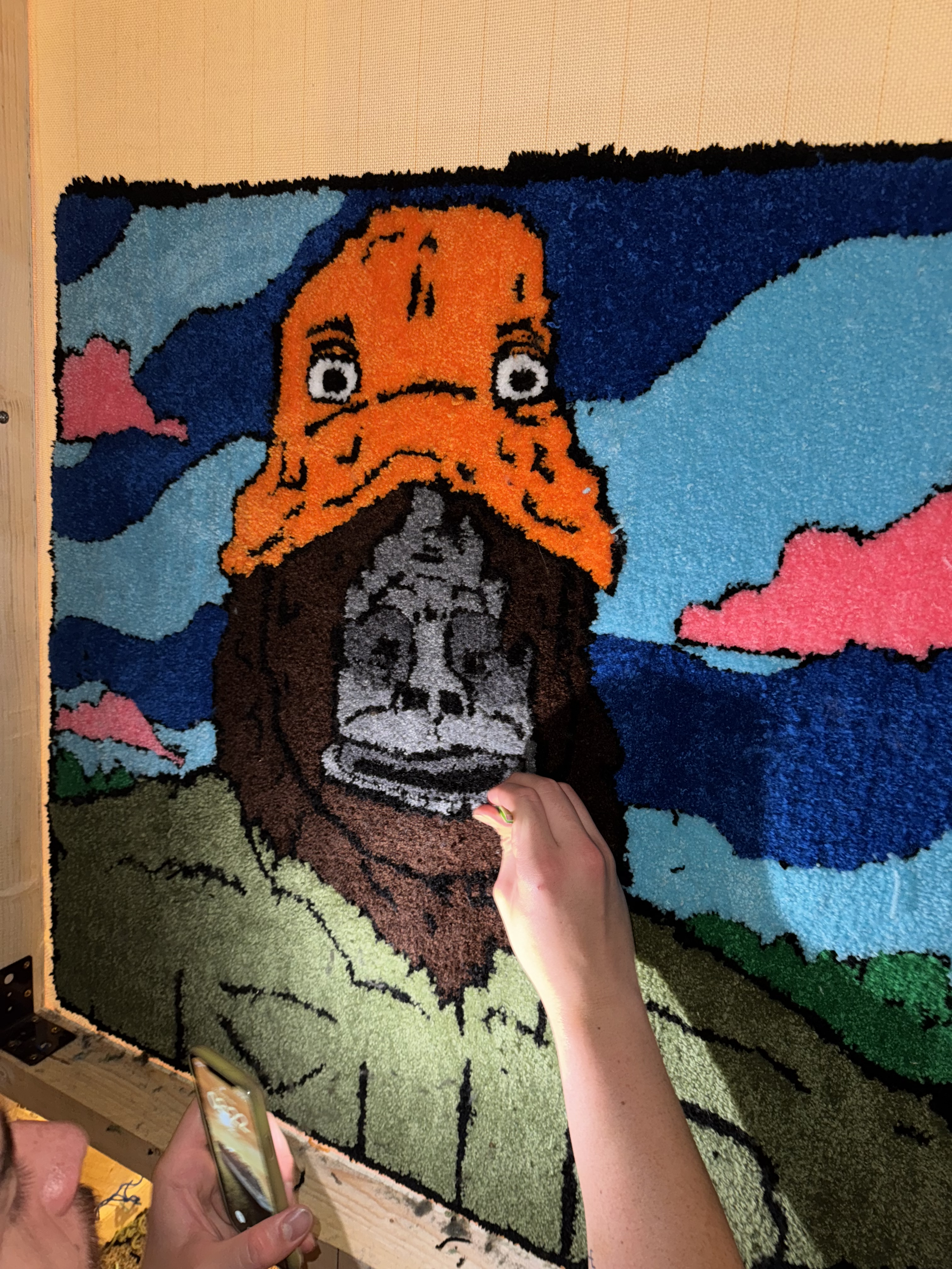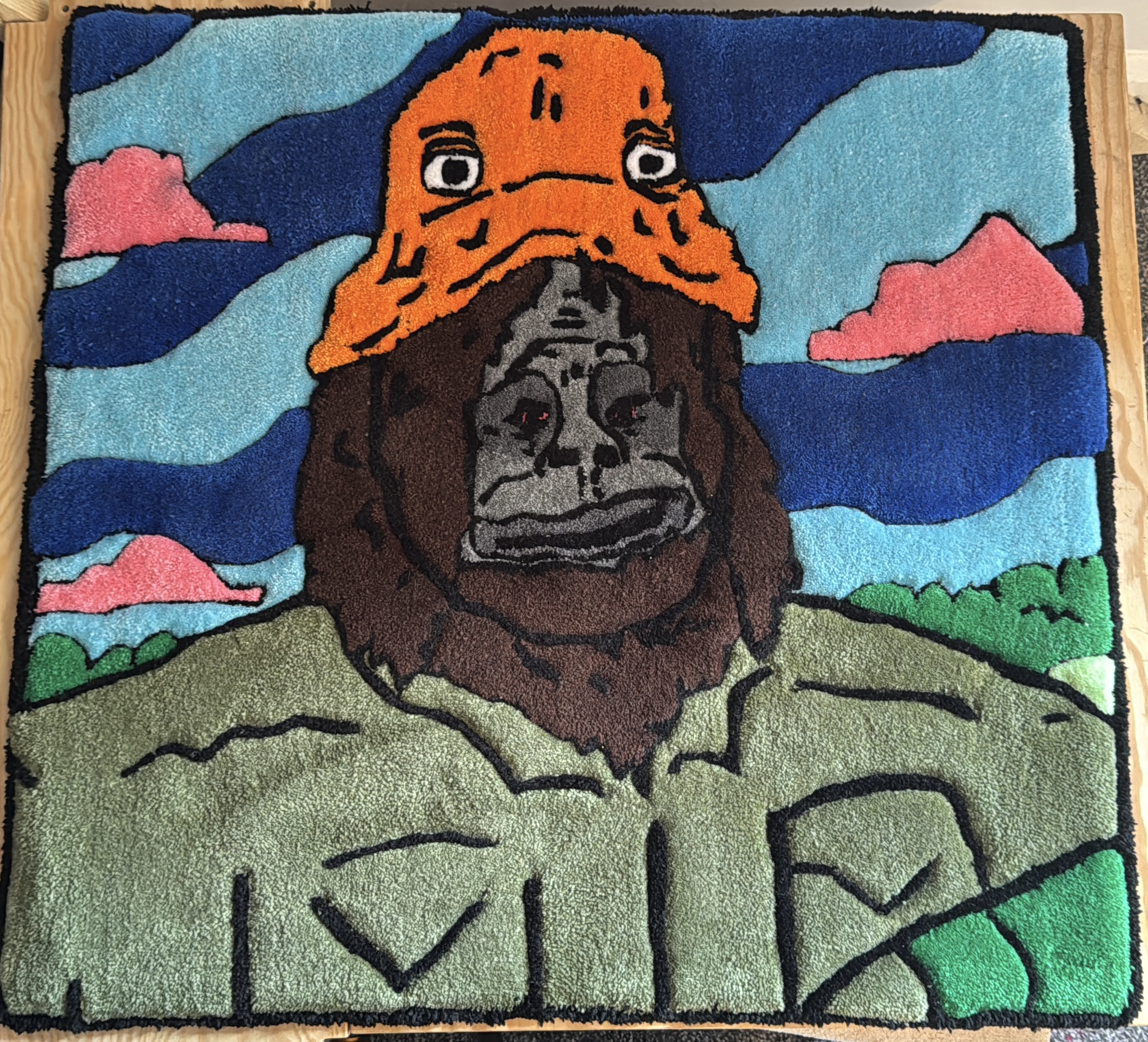@wovnrugs Everyone thank @Jarrad Wright for the art that is The Big Lez Show – without him we’d have no rug…😞 On a real though we ❤️ big lez & loved paying homage with this one! Hit us up for your own custom piece! #thebiglezshow #sassythesasquash #googlyeyes #customrugs